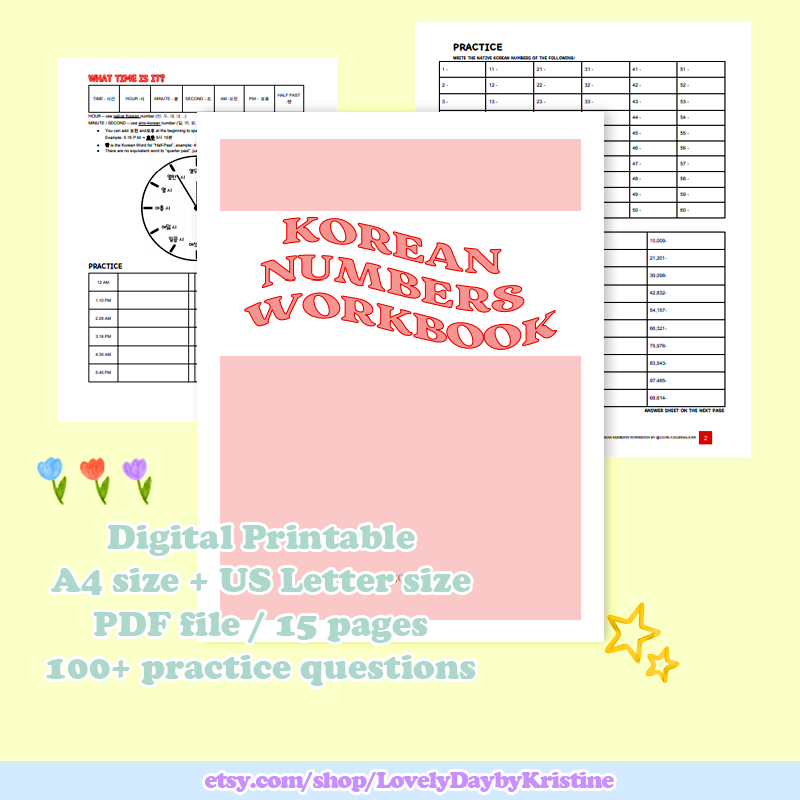 — this features 15 unique pages to help you practice and master the Korean Numbers! Includes guides and notes, with over 100+ practice questions and answer key.