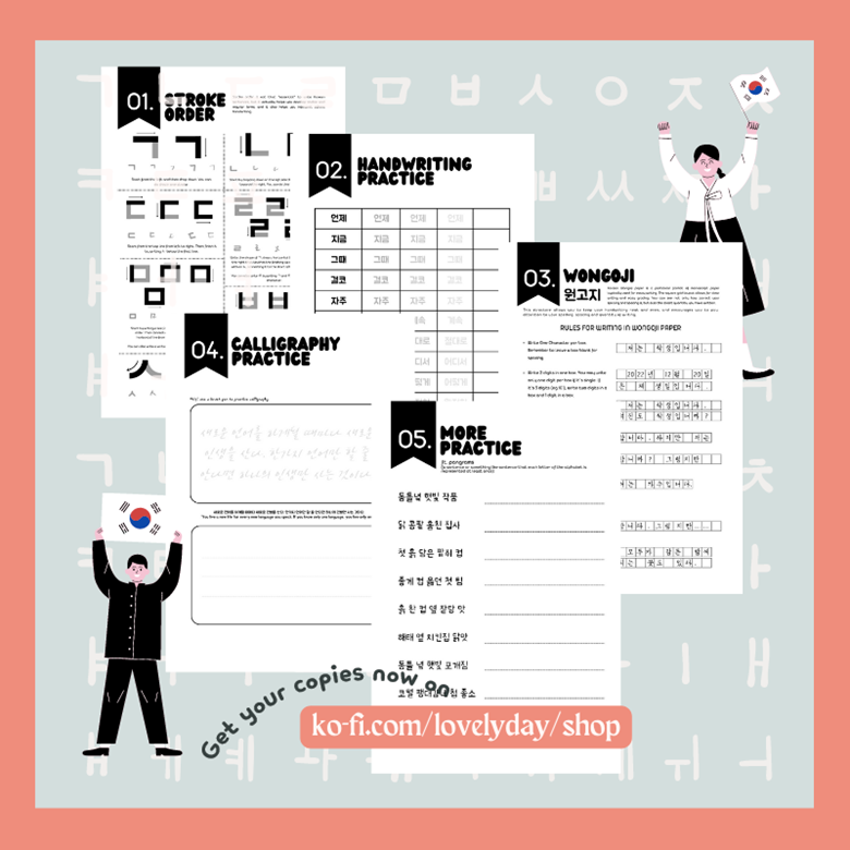 — this features 60 pages of guide and workbook to improve your Korean Handwriting skills. This book includes the Hangul Stroke Guides, Wongoji and Calligraphy. There are different types of fonts to find which handwriting fits you.